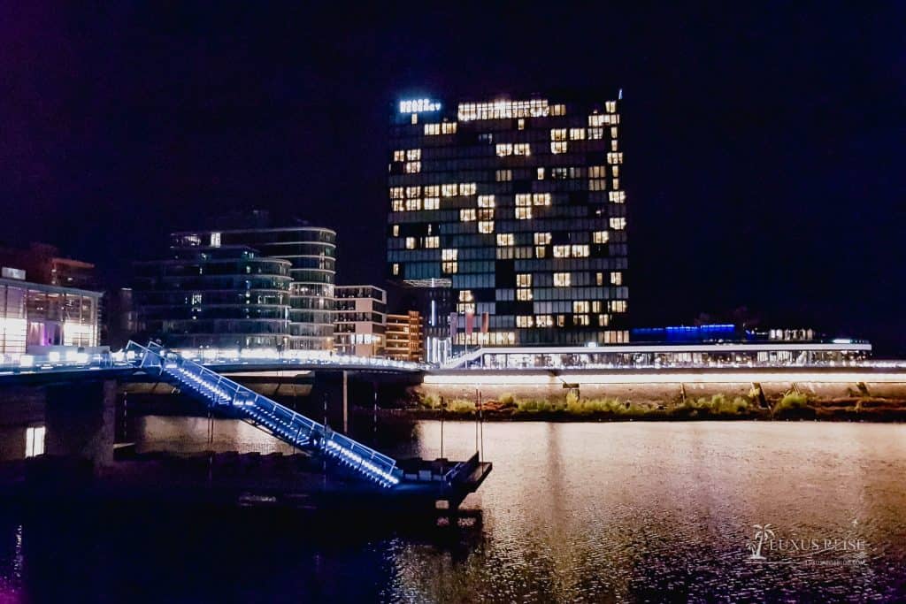 Impression of the Hyatt Düsseldorf with harbor and Rhine view at the Medienhafen from the Hyatt Regency. When you’ve lived in Düsseldorf for a long time, it’s always a different relationship with the city and when you come home, you often think about where to stay. While I was packing my suitcases and boxes in Düsseldorf and leaving the most beautiful city in Germany, a lot of things were being built in the Medienhafen in Düsseldorf. This includes a hotel that was already a topic of conversation among frequent travelers during the construction phase.